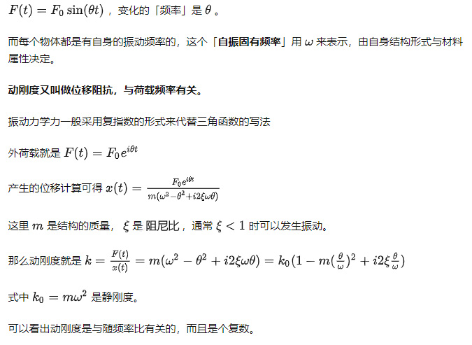 相應的如果是快讀變化的荷載,出現了明顯的加速度,比如振動,那就是動力荷載。動力荷載作用下力與位移的關系,可以用動剛度來描述。