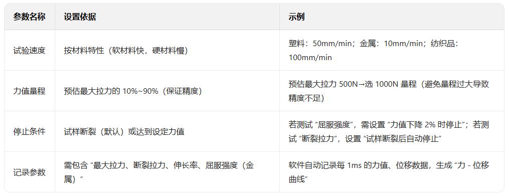 第三步:試驗參數設置(按標準匹配)
