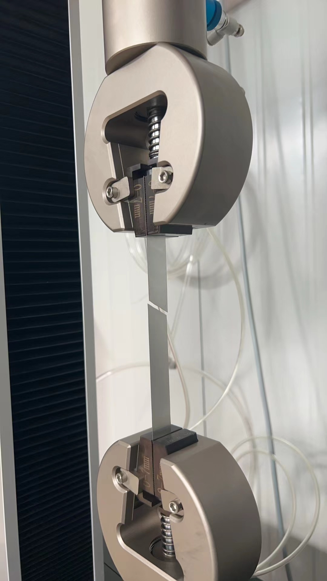 3.夾持力度:以試樣不打滑、不被夾傷為宜(如測試塑料時,夾具壓力調至 0.5MPa;測試金屬時調至 1.0MPa,具體按材料調整)。