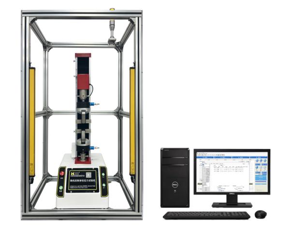 單柱拉力試驗機采用高剛性單柱式結構與高精度伺服電機驅動系統,通過同步帶傳動帶動橫梁上下移動,實現對試樣的拉伸加載。測試時,試樣兩端通過夾具固定,傳感器實時采集加載過程中的力值信號,位移傳感器同步記錄橫梁移動距離,數據傳遞至智能控制系統后,依據預設標準自動計算抗拉強度、剝離強度、斷裂伸長率等參數。